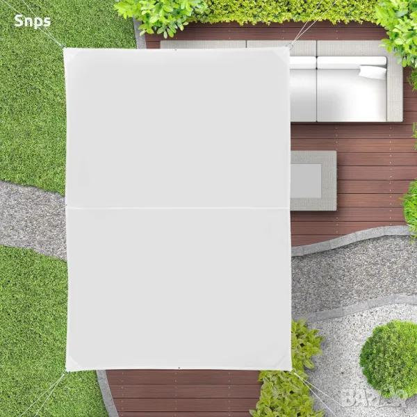 Без значение дали имате голяма градина с вътрешен двор или просто апартамент под наем с балкон, това бяло платно за сянка осигурява сянка за релакс. Изберете размера, който най-добре отговаря на вашите нужди, и използвайте капсите и куките, за да поставите тентата върху дърво, стълб или нещо подобно. Благодарение на включената чанта можете също да сгънете платното и да го вземете на къмпинг.