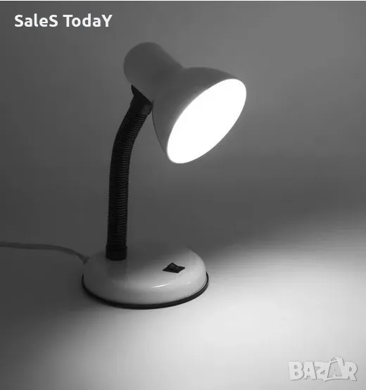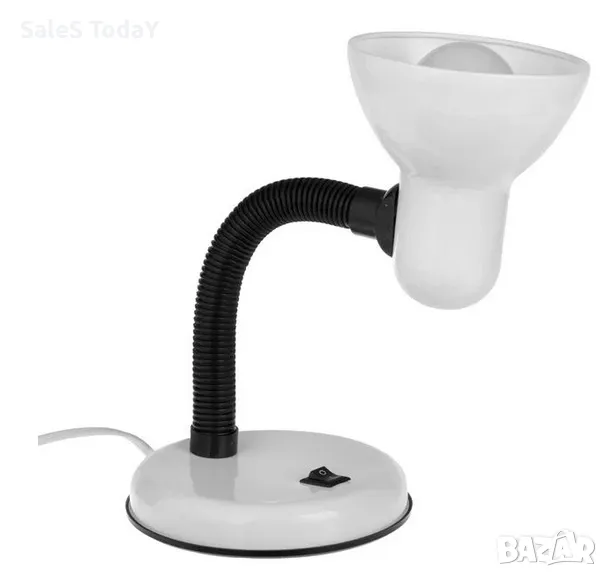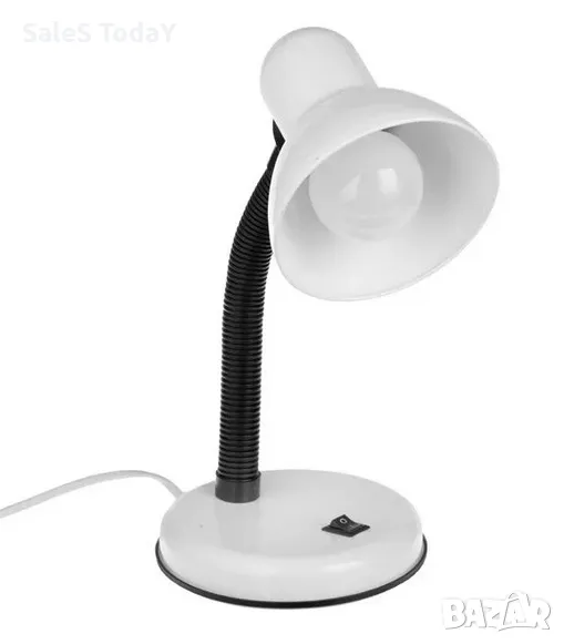 Перлено бяла настолна лампа с 3W крушка. Има гъвкаво рамо за регулиране на височината и посоката на светлината, където пожелаете, бутон за включване/изключване и 150 см кабел.