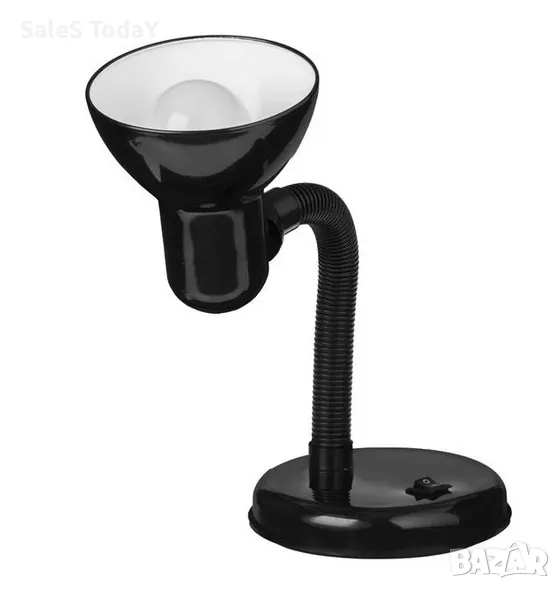Настолна лампа черна с 3W крушка. Има гъвкаво рамо за регулиране на височината и посоката на светлината, където пожелаете, бутон за включване/изключване и 150 см кабел.