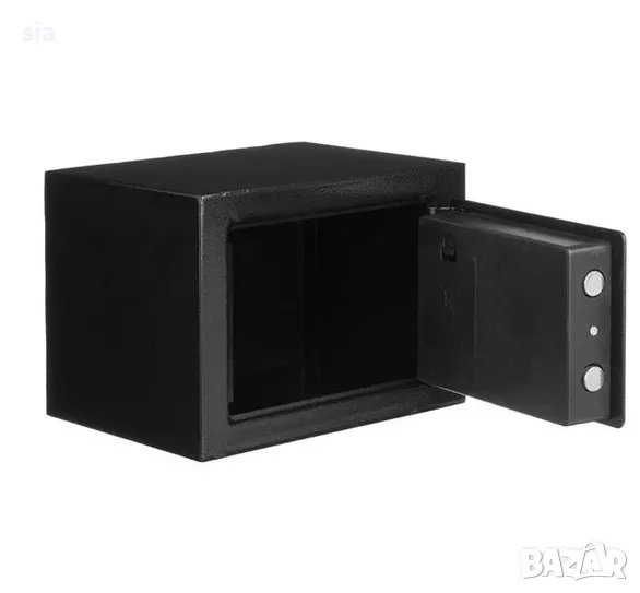 Сейф с ключ и цифрова комбинация. Изработена е от стомана и може да се постави навсякъде (под, гардероб, чекмедже) или да се монтира на стена през отворите на гърба. От вътрешната страна на вратата е гнездото за батериите на дигиталното табло, за да заявите желаната комбинация (следвайте инструкциите). Работи с 4 AA батерии (не са включени). Отворът на вратата е 18х13см.*Внимание! Не поставяйте ключовете вътре в сейфа. Всеки комплект ключове е уникален и се отнася само за този конкретен продукт.