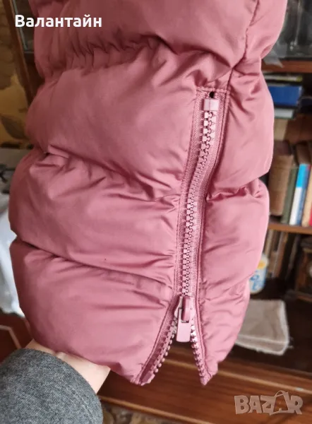 Дълга дамска грейка, цвят розов = пепел от роза. Широчина подмишниците 55см., дължина 85см. С качулка, двоен цип отпред и странични ципове. Обличана броени пъти, изпрана и прибрана. Няма никакви забележки .