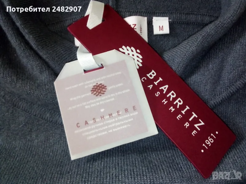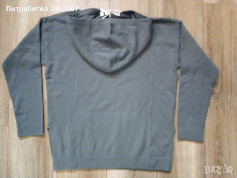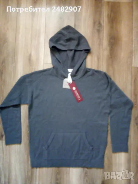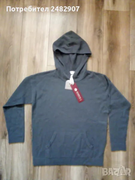 Оригинално дамско горнище с качулка от 100 % Кашмир, размер М. Ширина в раменете - 58 см, ширина под мишниците - 56 см, ширина в долната част - 46 см, дължина от рамото до долу - 65 см, дължина на ръкава от рамото - 49 см, ширина на ръкава в долната част - 10 см. Чисто ново, не е използвано, много меко, много тънко, много топло, с джобове отпред и цепки от двете страни долу. Дължина на цепките - 17 см.