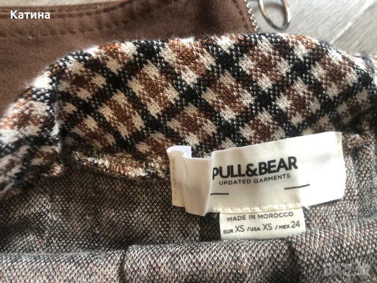 Pull Bear плисирана поличка от разтеглива материя.Кафяво-бежово гама.Размер на етикета XS.Обличана 2-3 пъти.Неразличима от нова.