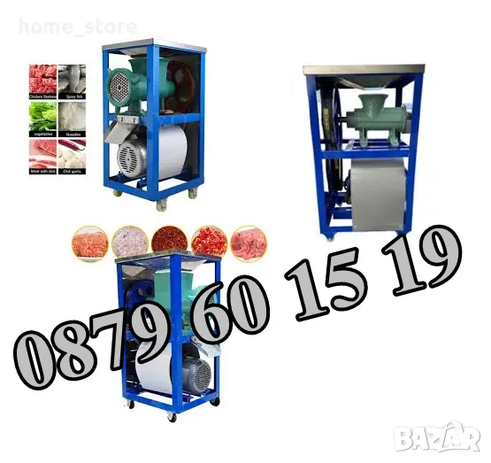 Вариант 2: Чугунена месомелачка №32 с колела, мелачка за месо с мотор и стойка, плот с фуния с 2 бр. ножове и 2 бр. решетка 6 мм и 8 мм - 165.00 евро