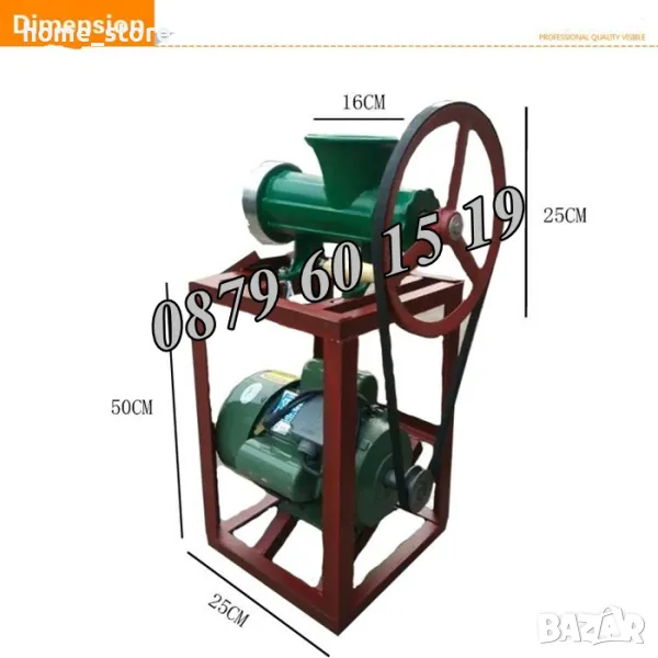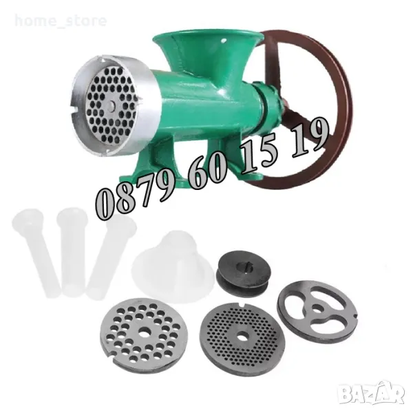 Вариант 2: Чугунена месомелачка № 32 с мотор и стойка с 2 бр. решетки и в 2 бр. ножове и 1 комплект фунии за пълнене - 105 евро