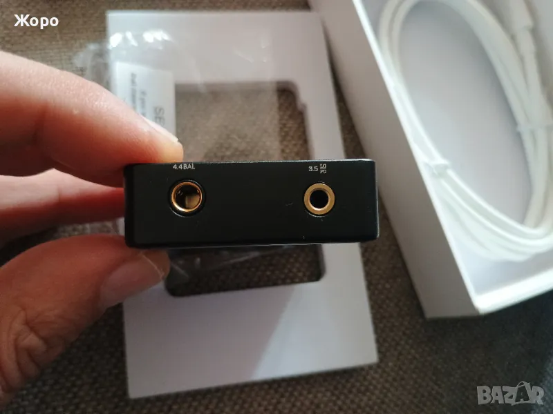 Така също има 3 вида балансирани изходи за слушане на XLR балансирани Усилватели (2.5mm balanced / 3.5mm balanced /4.4mm balanced), това означава че можете да изведете музикален сигнал към стандартни L/R чинове на вашата музика, така и на двойна балансирана XLR връзка (тоест жаковете вътре са Bal с четворни контакти), двата канала в устройството са независими схеми в клас А, с 4 броя ОУ Muse02 в балансирана схема. Максимално изходно ниво на всички 3 стерео изхода е 2V RMS, като от менюто може да се усилят допълнително до 4.0V (виж посл снимка какъв кабел можете да включите в устройството, нужно е да го закупите). Устройството работи също и с Балансирани слушалки, но трябва да имате такива. Като изходите са независими, можете на единият да включите слушалки, на другите два усилватели и тн. Устройството аутодетектва по импедансът какво е включено и го показва на съответният изход в менюто.