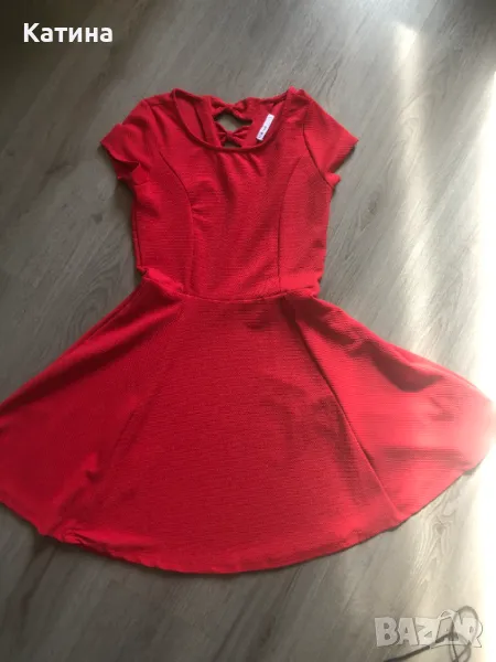Рокля в червен цвят от еластична материя.Размер на етикета TEEN L,затова я причислявам към дамски размер S/M.Нова.Подходящи елегантни сандали.Номер 36.Нови.