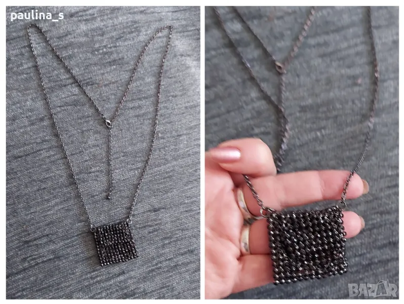 5. Колие тип гердан с черен родий и педантив като чанта, плетка - класик с щампа, нов - цена 14,99лв