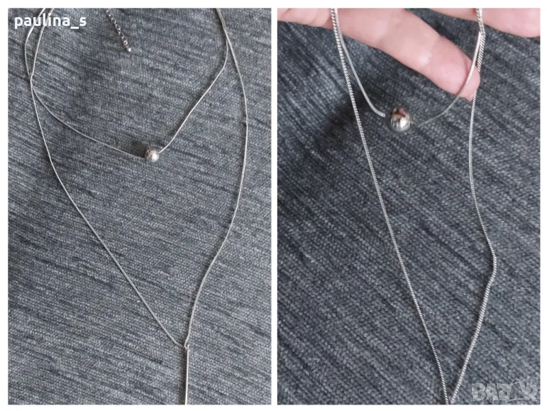 4. Две в едно - колие тип чокър и гердан с ланци в два вида плетка - змийска и класическа; чокърът е с топче, а герданът с пръчка. Голяма тупалка е, има и удължител, нов - цена 9,99лв