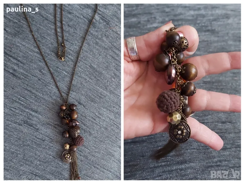 2. Колие тип гердан с оксидация на металите елементи, ланецът е усукан кралски, а педантивът е от различни по големина и форма елементи, не е нов, без дефекти / ръчна изработка - цена 29,99лв