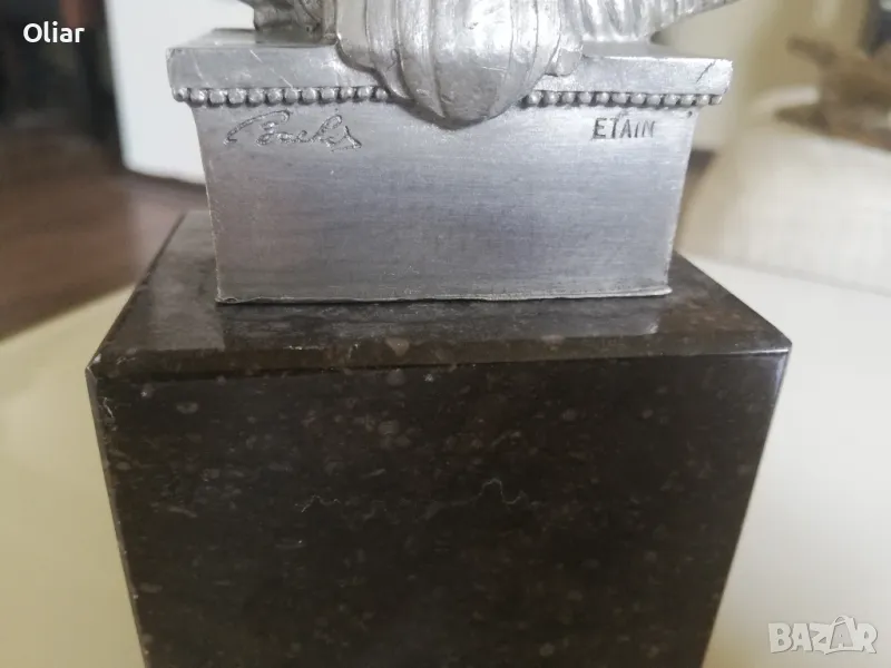 Чудесна статуетка на царски орел. Etain du Prince - Aigle Imperiale. Мраморна черна основа. Размери: Височина: 18.5 см. Ширина: 12 см. Дълбочина: 5 см.Много добро състояние. Идеален подарък, декорация, акцент. Моля погледнете и останалите ни обяви!