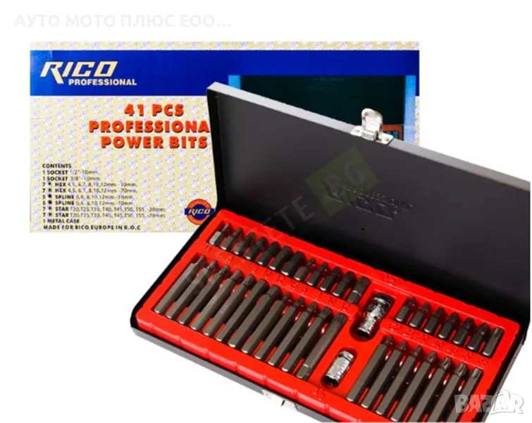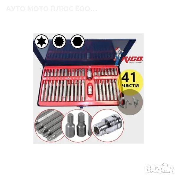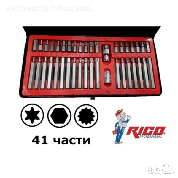 Този комплект инструменти е с полупрофесионално качество на RICO, включва 41 части, които ще помогнат за извършване на почти цялата работа не само върху автомобила, но и върху мебели и водопровода. Добре подбраният комплект го прави много популярен и благодарение на високоякостната стомана, инструментът може да издържи на значителни натоварвания. Комплектът с инструменти се предлага в удобен и издръжлив метален куфар.