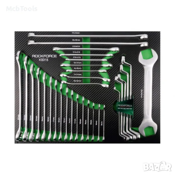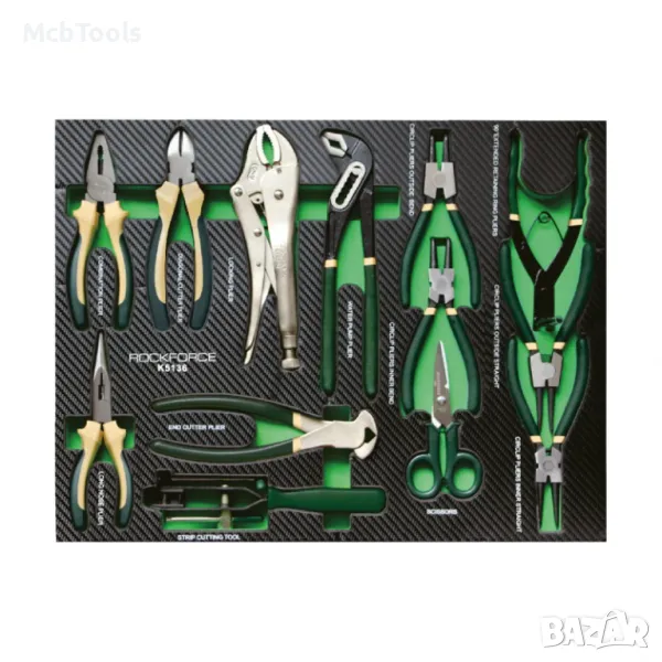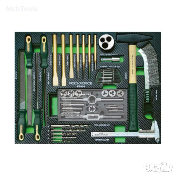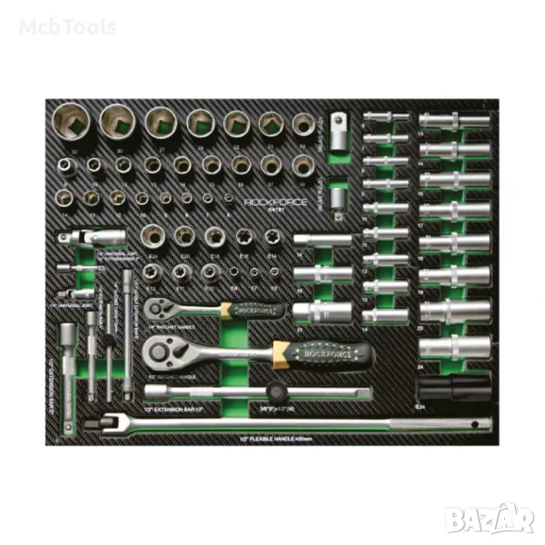 Количката за инструменти RockForce съдържа 274 елемента, има 5 рафта за инструменти, 2 празни рафта и допълнителна странична секция. Тялото е изработено от метал.