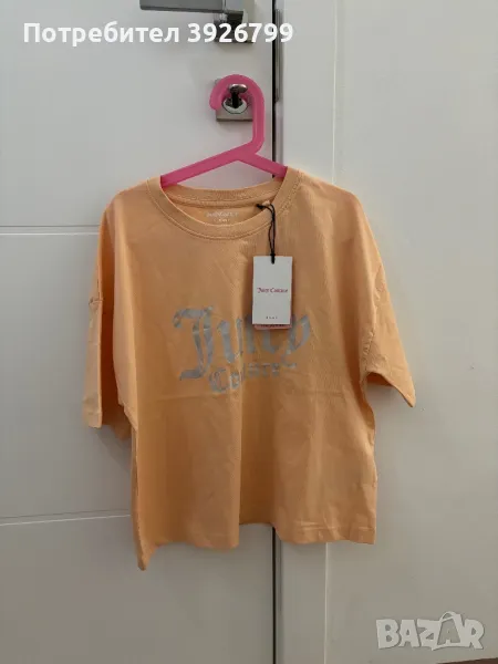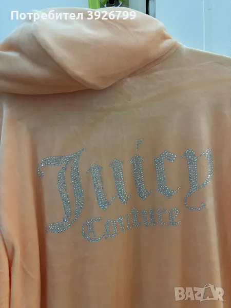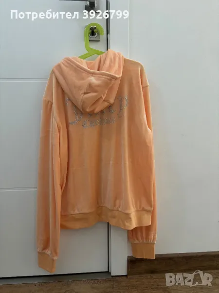 Оригинални дрехи Juisy couture, купувани от Англия. Продават се отделно. Горнище в нежен прасковен цвят-120 лв, долнище със сребрист Кант отстрани и лъскави частици-120 лв, тениска в нежен прасковен цвят-60 лв. Всички са размер 14-15 години, но стават за S-M
