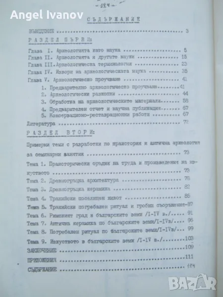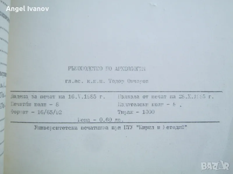 Ръководство по археология - Тодор Овчаров, 1985 година. Тираж 1000 бройки.Лично предаване.