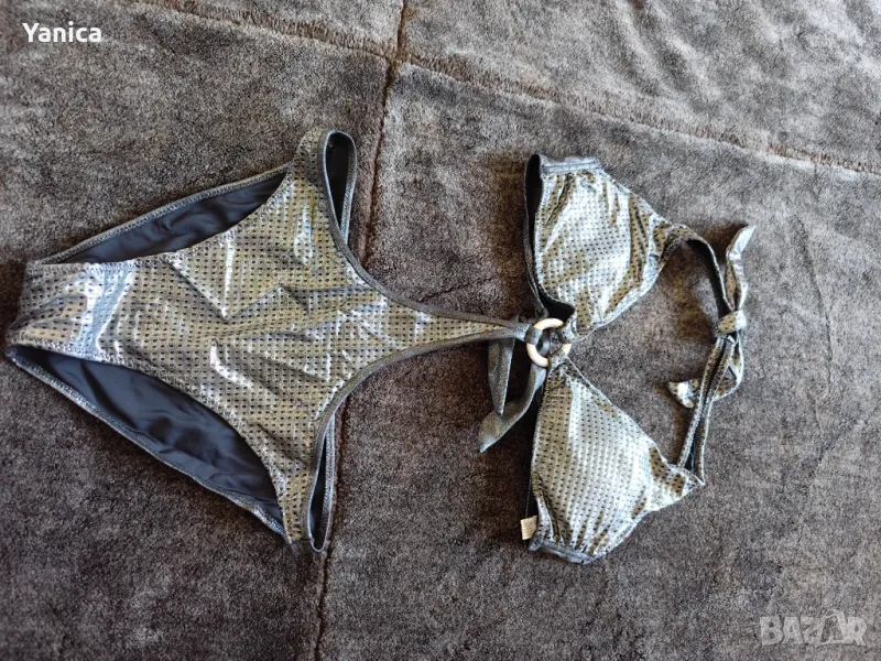 Сн 6 цял ефектен сребрист бански на New Silhouette, размер Л, цена 10 лв