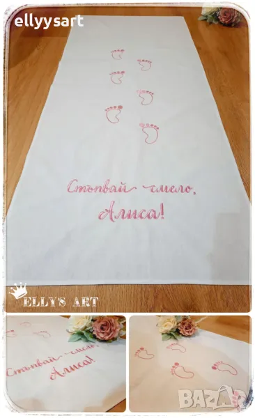 Платно за прощъпулник, изработено с машинна бродерия върху памучен плат/хасе/ с размер 120х50 см.