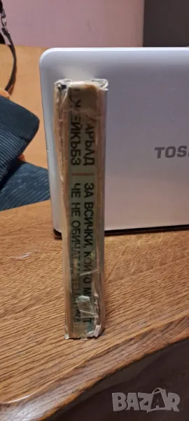 Забележка по тялото на книгата, залепено с тиксо и пожълтели страници
