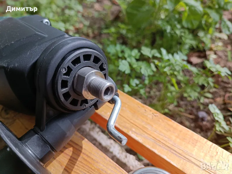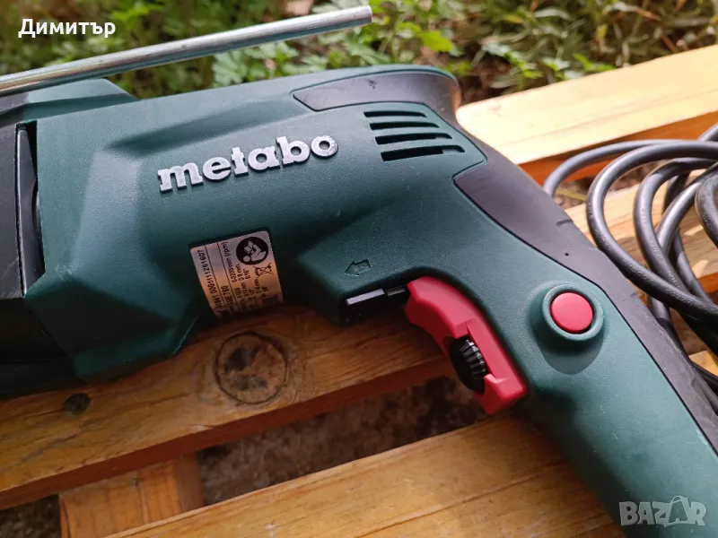 Ударна бормашина, в много добро, изправно състояние и минимални следи от употреба. Патронника е нов, неизползван. Същия се сваля и шпиндела може да се използва като държач на битове. В комплект с куфар, странична ръкохватка и дълбочинен ограничител.