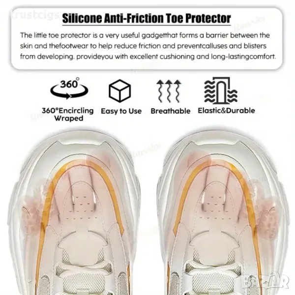 Силиконовите протектори създават защитен барьер между кожата и обувката, абсорбирайки натиска и предотвратявайки триенето. Те също така помагат за разделяне на пръстите, като предотвратяват припокриването им и намаляват риска от нараняване.