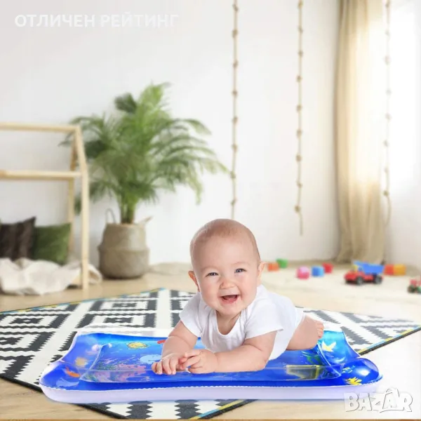 - НАДУВАЕМА ВОДНА ПОСТИЛКА – уникална водна постелка за бебета Изработен е от висококачествена пластмаса , която гарантира изключителна издръжливост. Ръбът на постелката трябва да се надуе с въздух, а центъра да се напълни с вода. След сгъване заема малко място , благодарение на което можете да я заведете на пътуване или на почивка с дете . Вътре бяха поставени цветни водни животни, които ще се движат под влияние на движенията на лежащото върху него дете. Е много лесен за почистване, просто го избършете с влажна кърпа и е готов за игра!