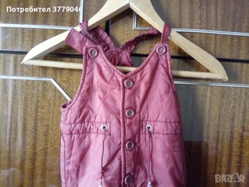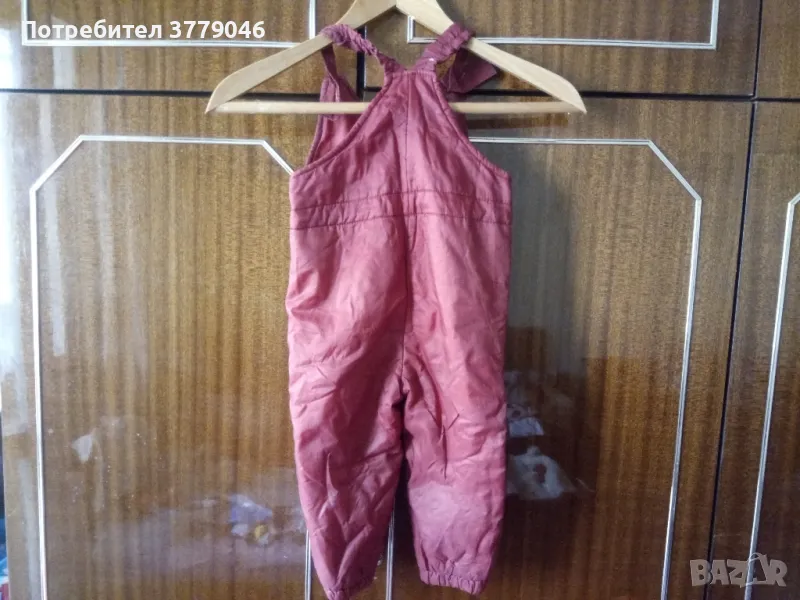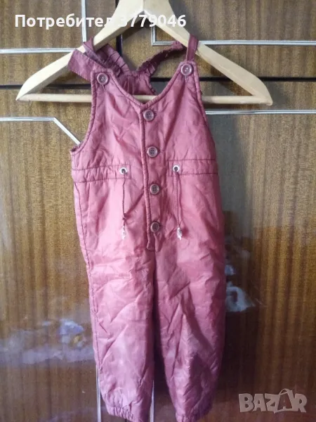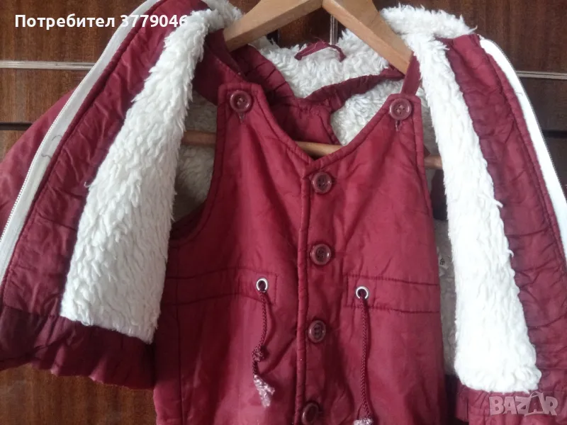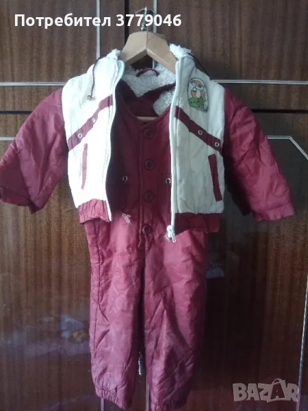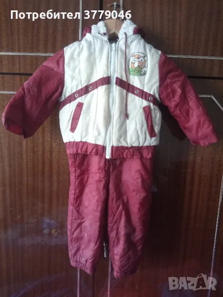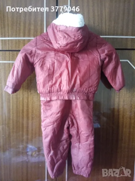 Зимен детски комплект яке и гащеризон от социализма Размер 25. Състав 100 % relon. Размери на якето: дължина 33 см, ширина при раменете 28 см, ръкав 28 см.Размери на гащеризона: дължина 70 см, от чатала 28 см, ширина 31 см.