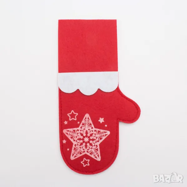 Коледен калъф за прибори декорация за маса Ръкавичка. Коледно калъфче за прибори с форма на ръкавичка и декорация звездички в центъра си. Коледна дреха за вилица, лъжица и нож. Красив коледен калъф за прибори. Коледна украса и декорация за празнична маса. Създава весело настроение и засилва коледният дух.