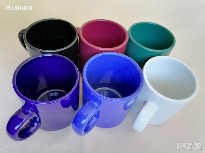 Разноцветни порцеланови чашки за кафе, 6 броя, вместимост 100 ml, запазени, без забележки