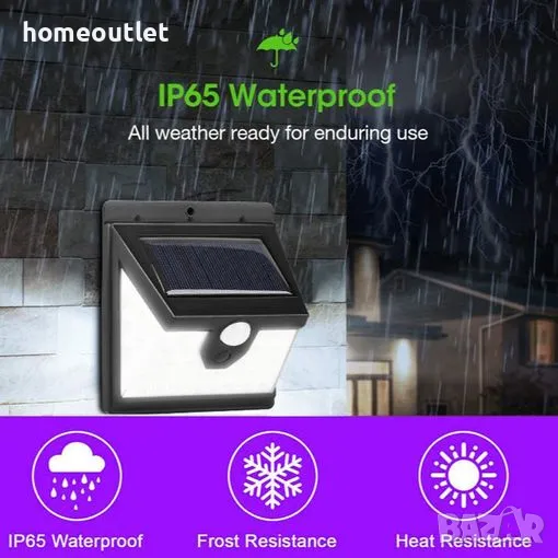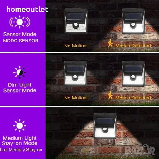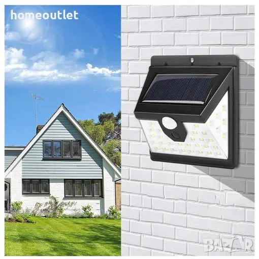 Соларна лампа с детектор за движение и автоматично включване, активирано от интензитета на околната светлина: