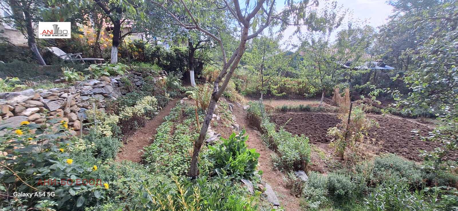 дюли, праскови, ябълки, ягоди, обработваема зеленчукова градина за домати, краставици, билки и подправки и цветната градина са поддържани в перфектно състояние.