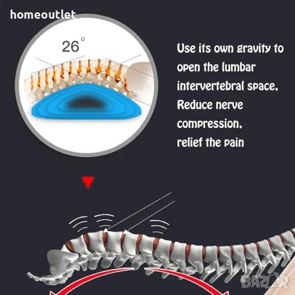 Устройството за изправяне на гърба и коректор на стойката може да се използва, докато лежите на пода, срещу таблата на леглото или на стол за облекчаване на болката при ишиас и др.
