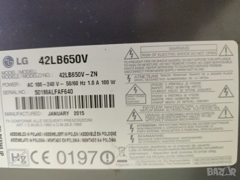 LG 42LB650V на части, снимка 1 - Части и Платки - 47579382 LG 42LB650V на части, снимка 2 - Части и Платки - 47579382 LG 42LB650V на части, снимка 3 - Части и Платки - 47579382 LG 42LB650V на части, снимка 4 - Части и Платки - 47579382 LG 42LB650V на части, снимка 5 - Части и Платки - 47579382 1/5
