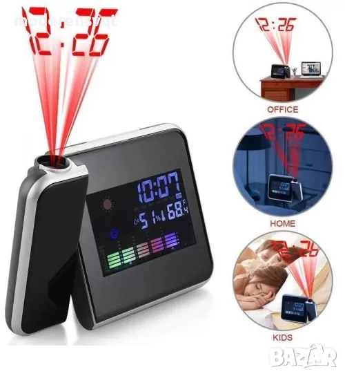 часовник с проектор за стена, таван и термометър
