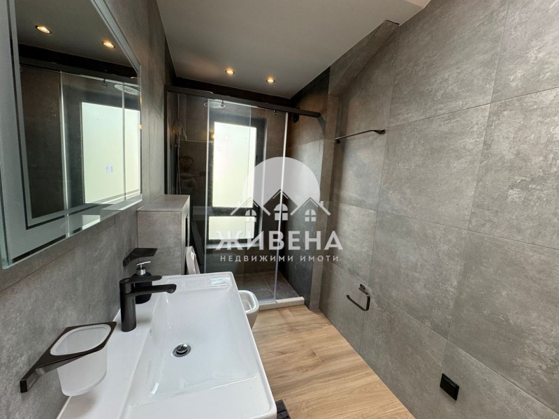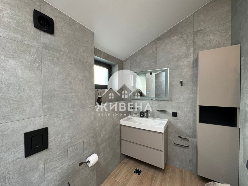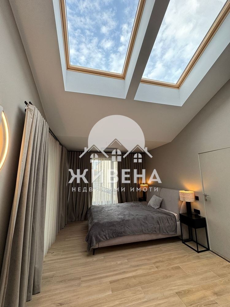 Агенция Живена има удоволствието да Ви представи нова, просторна двуетажна къща, обзаведена с вкус и стил в м-т Зеленика. Жилището е разположенo в тиха и спокойна част над плаж Аспарухово в комплекс New Point, с лесен, целогодишен достъп до имота на свеж въздух и спокойствие от градската суматоха. Помещенията са просторни, с френски прозорци предаващи естествена светлина. Хармоничното съчетание на индустриалния стил на екстериора се прелива с удобни италиански мебели. Разпределението на имота е, както следва: Първо ниво - просторна слънчева дневна стая с вградена кухня и излаз към уютна градина с гледка към гр. Варна, спалня за гости със собствена баня и тоалетна, сервизно помещение, перално помещение, както и отделна тоалетна. Кухнята е оборудвана с качествени електроуреди BOSCH и остров за повече удобство, пространство за приготвяне и място за съхранение. Стълби със стъклен парапет Ви водят към второ ниво на къщата къде ще откриете: Спалня с обща тераса, втора спалня със собствена баня и тоалетна, комфортен кабинет, който може да бъде преправен на 3-та спалня, баня с вана и тоалетна, гардеробна и складово помещение с изградени рафтове за повече комфорт. Къщата е с монтирани климатици, както и цялостно подово отопление и термопомпа. За паркиране на автомобили има самостоятелен гараж, както и открито паркомясто. Комплексът разполага с контролиран достъп с видеонаблюдение и денонощна охрана. На територията на комплекса има изградени: парк за отдих, детска и спортна площадка, зона за BBQ, фитнес и парк за кучета. Таксата поддръжка е 250 лв. на месец. Повече снимки може да разгледате в нашия сайт: jivena.bg. За повече информация и оглед, моля, позвънете на посочения номер за връзка. Оферта 6826