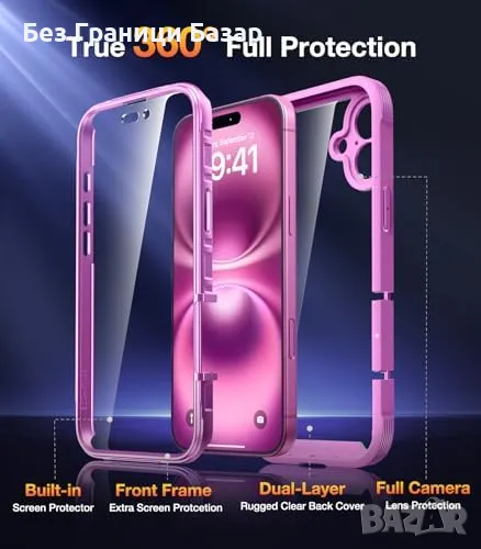 Нов Калъф за iPhone 16 6.1" с Пълна Защита и Протектор за Екрана