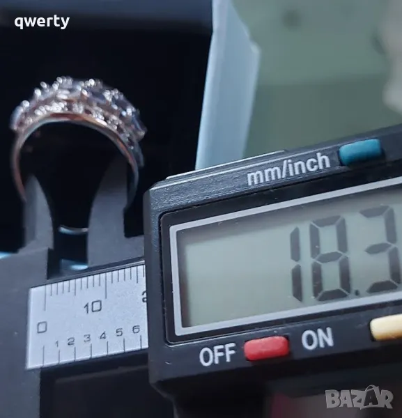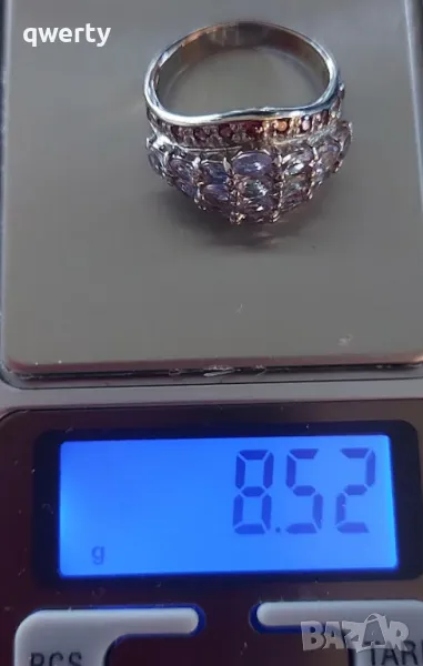 Красив модел нов сребърен пръстен с танзанити и турмалини (рубелити) с покритие от бяло злато. Размера и грамажа са на снимките. Налична маркировка 925.