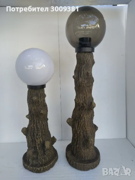 градински циментови лампи,имитация на дърво размери 65см,цената на лампата е 110лв без глобуса и 20лв глобус може и на вайбър