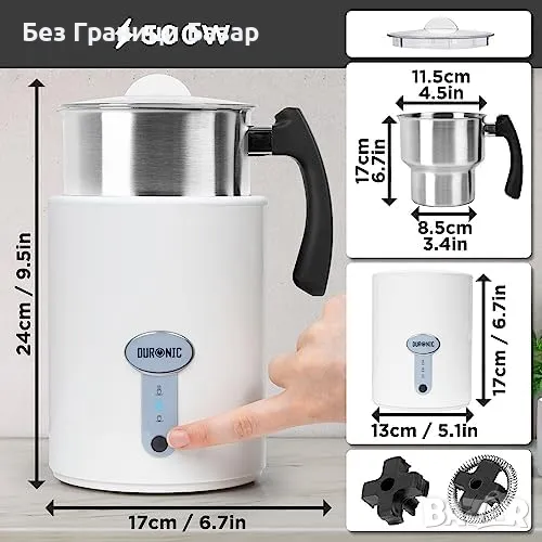 Нова Електрическа машина за млечна пяна Duronic MF500 за топли и студени напитки