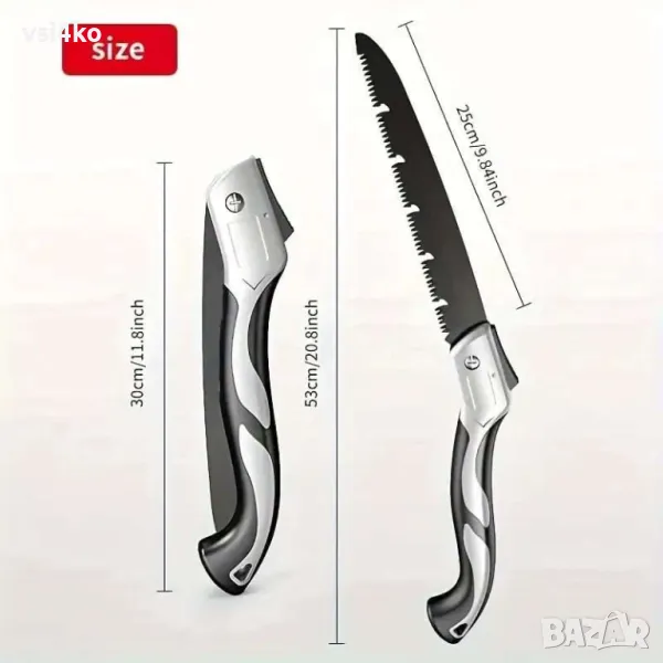 - Удобен и преносим : Благодарение на компактния сгъваем дизайн, трионът е лесен за носене и съхранение, подходящ за излети, градинарство и къмпинг.