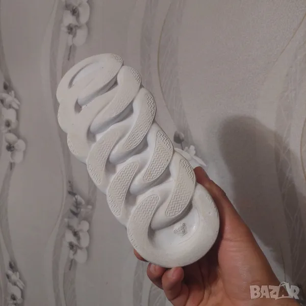 Chain Reaction 2 е масивна маратонка, вдъхновена от модния подиум, която носи луксозен стил и улична чувствителност в пики. Бялата мрежеста горна част е обвита в еластичен черен велур и е завършена с червена бродирана марка.