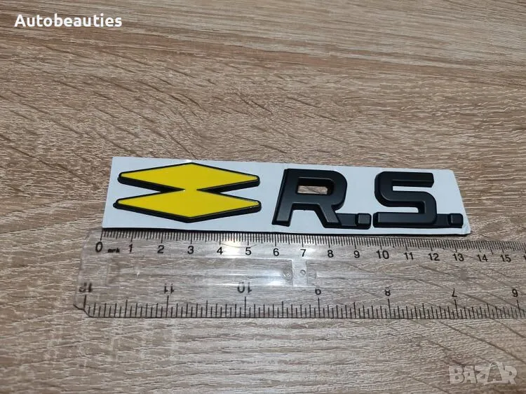 нова емблема Renault R.S. в жълто с черно. Размерите са дадени на снимките.