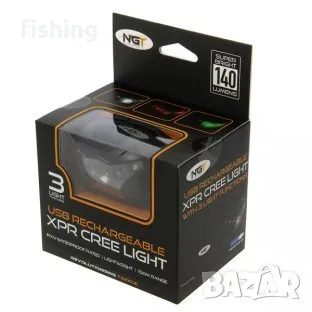 Дългоочакваният NGT XPR USB акумолаторен челник е напълно нов за гамата от осветителни продукти на NGT.Снабден с ярък лъч с 140 лумена и продължителност на светене до 12 часа.Челника разполага с 3 степени на бяла светлина (висока, средна и ниска). Вградената USB акумолаторна батерия осигурява до 12 часа осветление при опция за слабо светене, 8 часа при седна настройка и 4 часа при висока степен на светене с обхват от 150 метра. Разполага с опция за червена и зелена светлина в допълнение на стандартната бяла светлина.Снабден с напълно регулируема каишка за глава, usb кабел за зареждане и калъв за транспортиране.