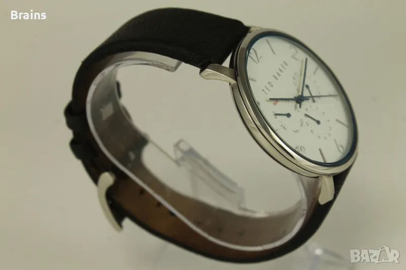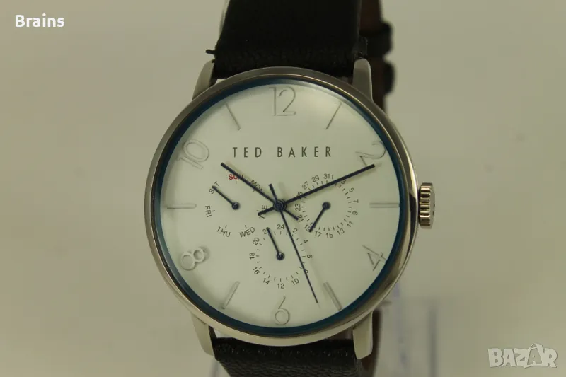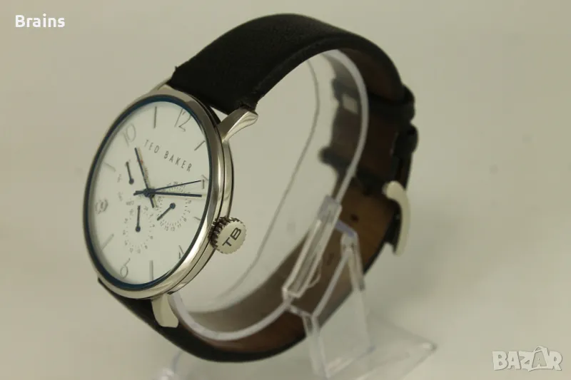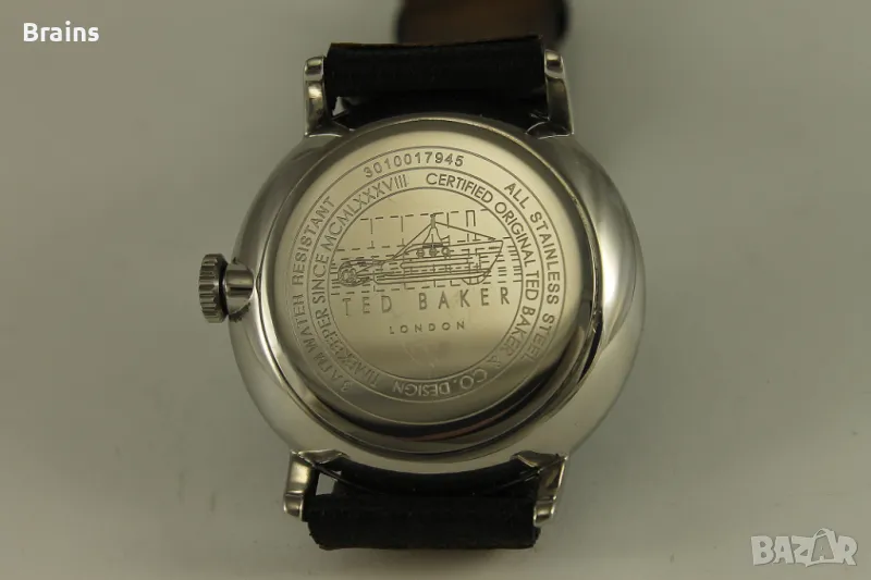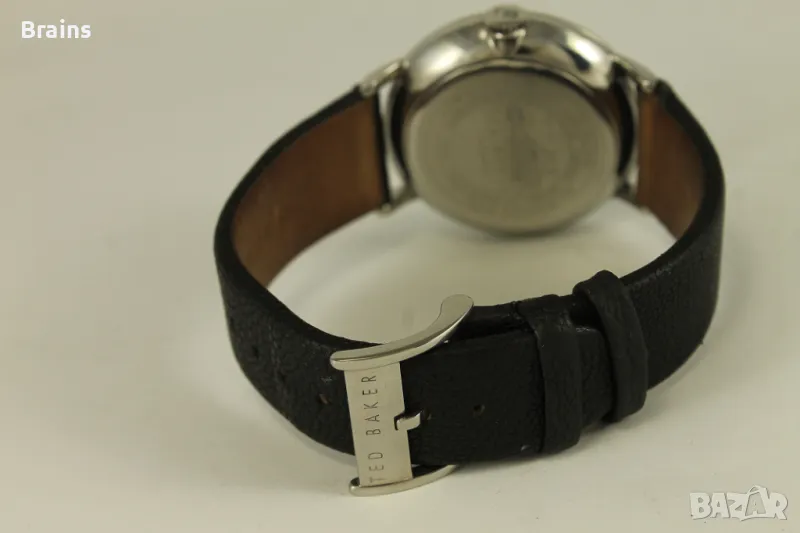 Оригинален мъжки часовник TED BAKER LONDON. Каса изцяло изработена от неръждаема стомана. Оригинална кожена кайшка със закопчалка. В отлично визуално състояние. Часовника работи точно, всички функций работят.