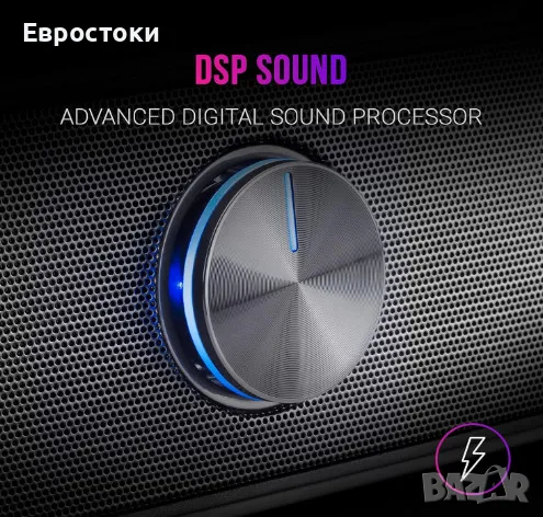 Динамичен RGB. Изберете от 5 зашеметяващи RGB динамични режима на осветление благодарение на сензорна система в горната част на саундбара Mars Gaming MSBX.