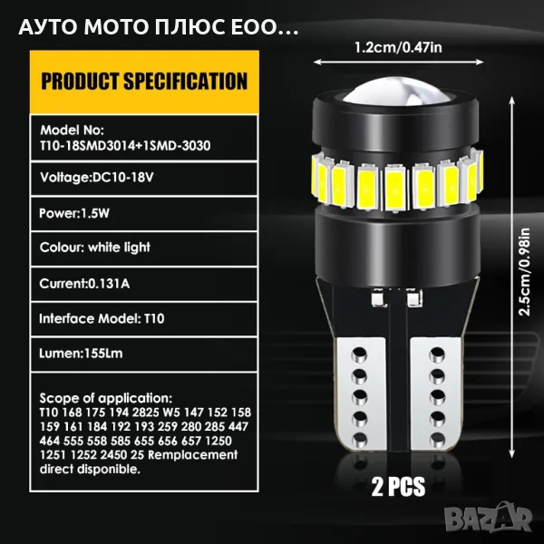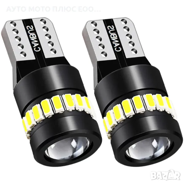 Комплект LED крушки T10 W5W Canbus, 18 SMD, 12V с лупа.