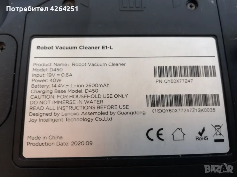 Lenovo Robot Vacuum Cleaner E1-L D450 прахосмукачка робот