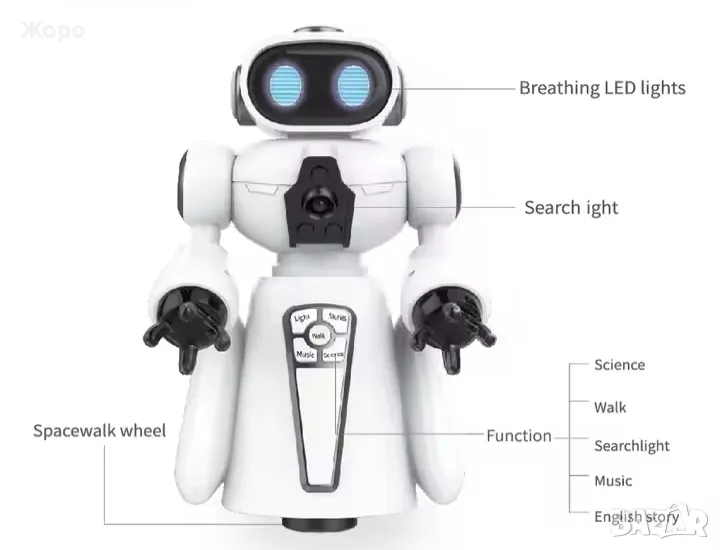 Дайте да откриваме света и този уникален супер умен и интелигентен робот , който може да разказва истории , да почиства стаята на детето , да показва снимки , да пее ,да върви да свети и прожектира снимки.