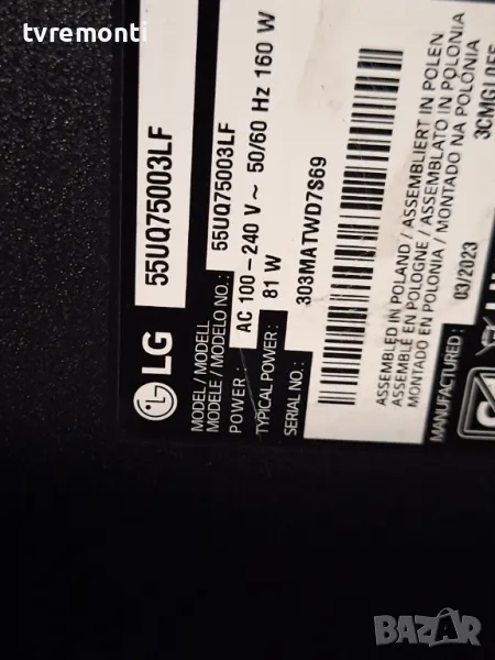 Power Supply Board EAX68284302 (1.0) EAY65149308 LGP55T-19U1 for, LG 55UQ75003LF 55inc DISPLAY HC550DQG-ABXL2-A144 борда е гарантирано работещ Демонтиран от телевизор LG модел 55UQ75003LF със счупен дисплей HC550DQG-ABXL2-A144 тествана от нашия техник Ремонт на всички марки съвременни телевизори