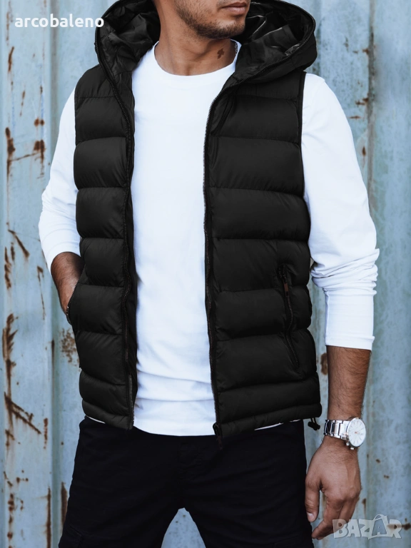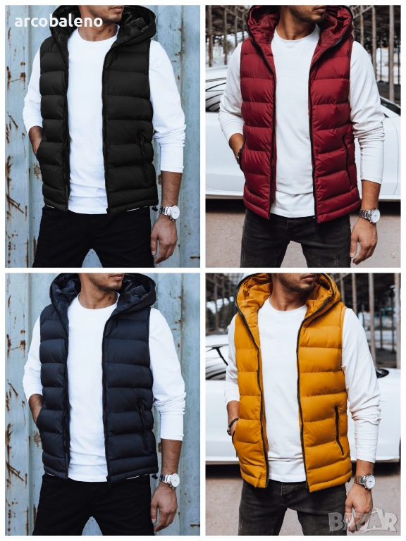 Мъжка ватирана жилетка с качулка, 4цвята