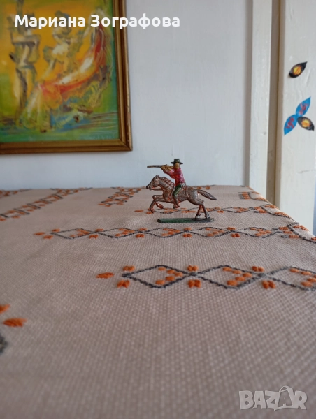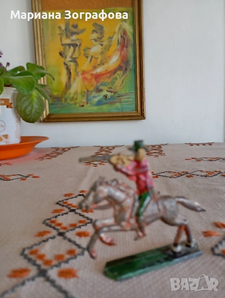 C. Оловна фигурка от стрелбище - Каубой върху кон, 1960-70 г.,